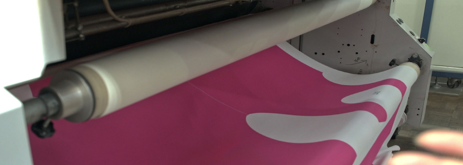昇華プリントは、白地のポリエステル100%地にプリントを行うプリント方法です。通常のインクジェットは生地表面にインクを定着させる手法に対し、昇華プリントは、生地に染色を行います。